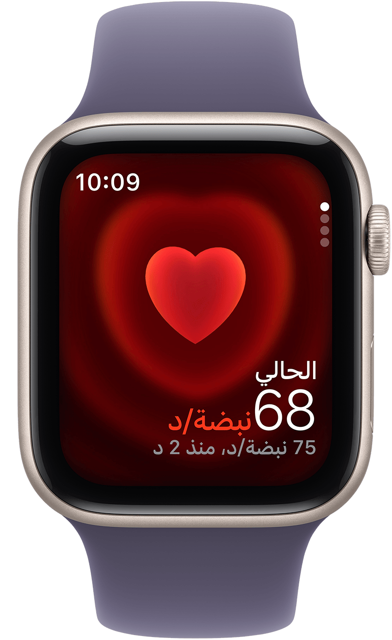 تحقّق من معدل نبض قلبك في أي وقت من خلال تطبيق نبض القلب، واحصل على إشعارات ارتفاع معدل نبض القلب أو انخفاضه أو اضطراب النَّظْم.11