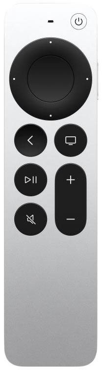 A touch-enabled clickpad. Easily swipe through episodes, scenes, or frames with an intuitive circular movement. Turn your TV on or off, change the input to Apple TV 4K, and control the volume.
