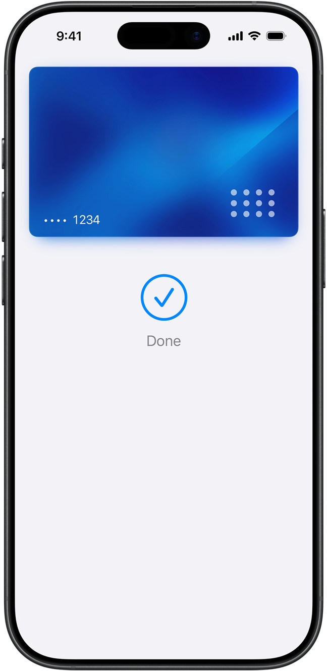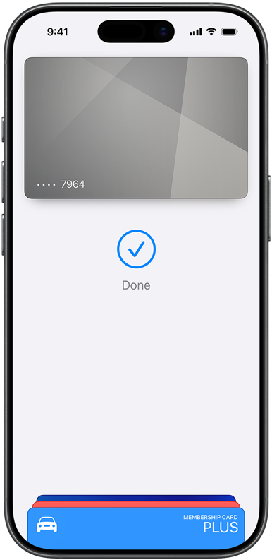 Das Hinzufügen einer qualifizierten Kredit- oder Debitkarte geht ganz einfach: Öffne die Wallet App, tippe auf das Pluszeichen und halte die qualifizierte Karte an die Rückseite deines iPhone.1 Alternativ kannst du eine Karte auch manuell hinzufügen. Öffne dazu die Wallet App, tippe auf das Pluszeichen und folge den Schritten auf dem Bildschirm. Überprüfe deine Daten bei deiner Bank oder deinem Kartenaussteller. Du kannst die Karte auch auf deiner Apple Watch hinzufügen, sofern sie gekoppelt ist. Wenn du auf ein neues iPhone upgradest, kannst du deine Karten in einem einfachen Schritt auf das neue Gerät übertragen.