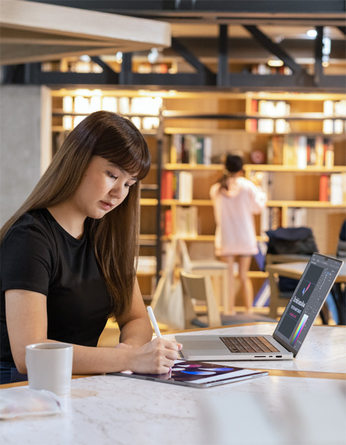 iPad also supports her daily academic work. Bim uses Apple Pencil with Goodnotes for note-taking, and Microsoft Word on iPad for creating art descriptions. “In class, I use iPad Pro to present my work,” Bim says. “And the 12.9-inch screen is large enough for my professor to view my art comfortably.”