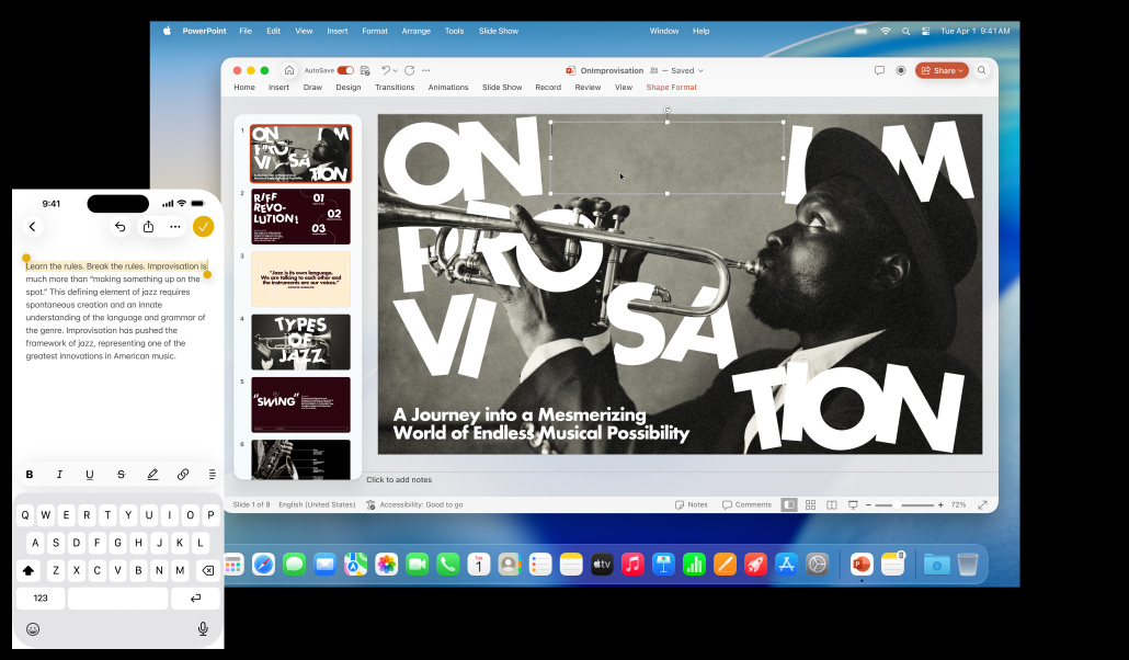El Mac, el iPhone, el iPad y el Apple Watch ya son increíbles por su cuenta. Pero al usarlos juntos, se lucen mucho más. Gracias a Continuidad, tus dispositivos trabajan en equipo con total fluidez para que puedas acceder a un mundo de funcionalidades espectaculares. Empieza a escribir un email en tu Mac y termínalo en el iPad. Saca una foto en tu iPhone para verla al instante en el Mac. O haz llamadas sin tener que usar el iPhone.1 Todo gracias a Continuidad.