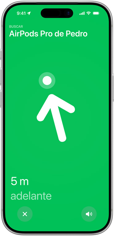 Encuentra tus AirPods Pro exactamente donde los dejaste. El estuche de carga incorpora una nueva generación de banda ultraancha que aumenta la distancia de Rastreo Preciso 1.5 veces.11 Y gracias a la bocina incorporada en el estuche, podrás encontrar tus AirPods aunque se hayan escondido en el recoveco más recóndito de tu sofá.