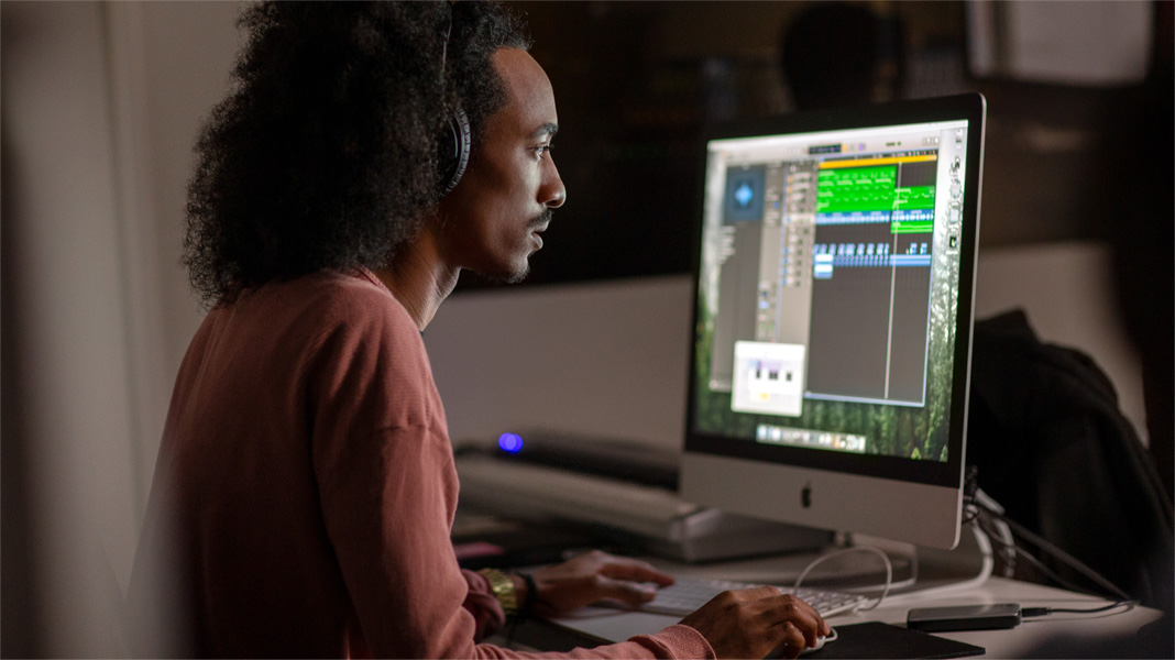 MacBook Pro. The all-in-one professional tool Hughes trusts to prepare burgeoning creators and producers for successful careers. Logic Pro on Mac serves as the foundation for his entire music and sound design curriculum. Students learn to record, edit, and mix all kinds of music with a pro-level sonic palette — and create pro-level portfolios to prepare for the music industry.