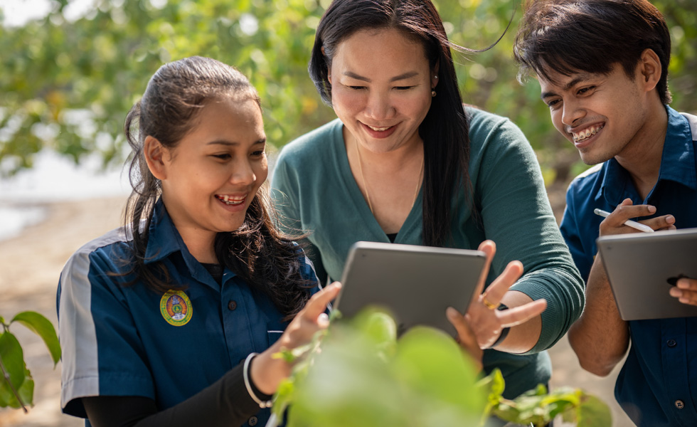 Still an active educator herself, introducing new instructional methodologies using technology is one of the most rewarding parts of Dr. Chatmaneerungcharoen’s role. “In Phuket, we have a long tradition of supporting nature-based education — we head outdoors, or the environment comes into the classroom,” she says. In one lesson, her student teachers go out into the local mangroves to record photos and videos using Camera and Padlet on iPad, which they incorporate into their lesson plans to create localized, collaborative, project-based learning experiences for their students.