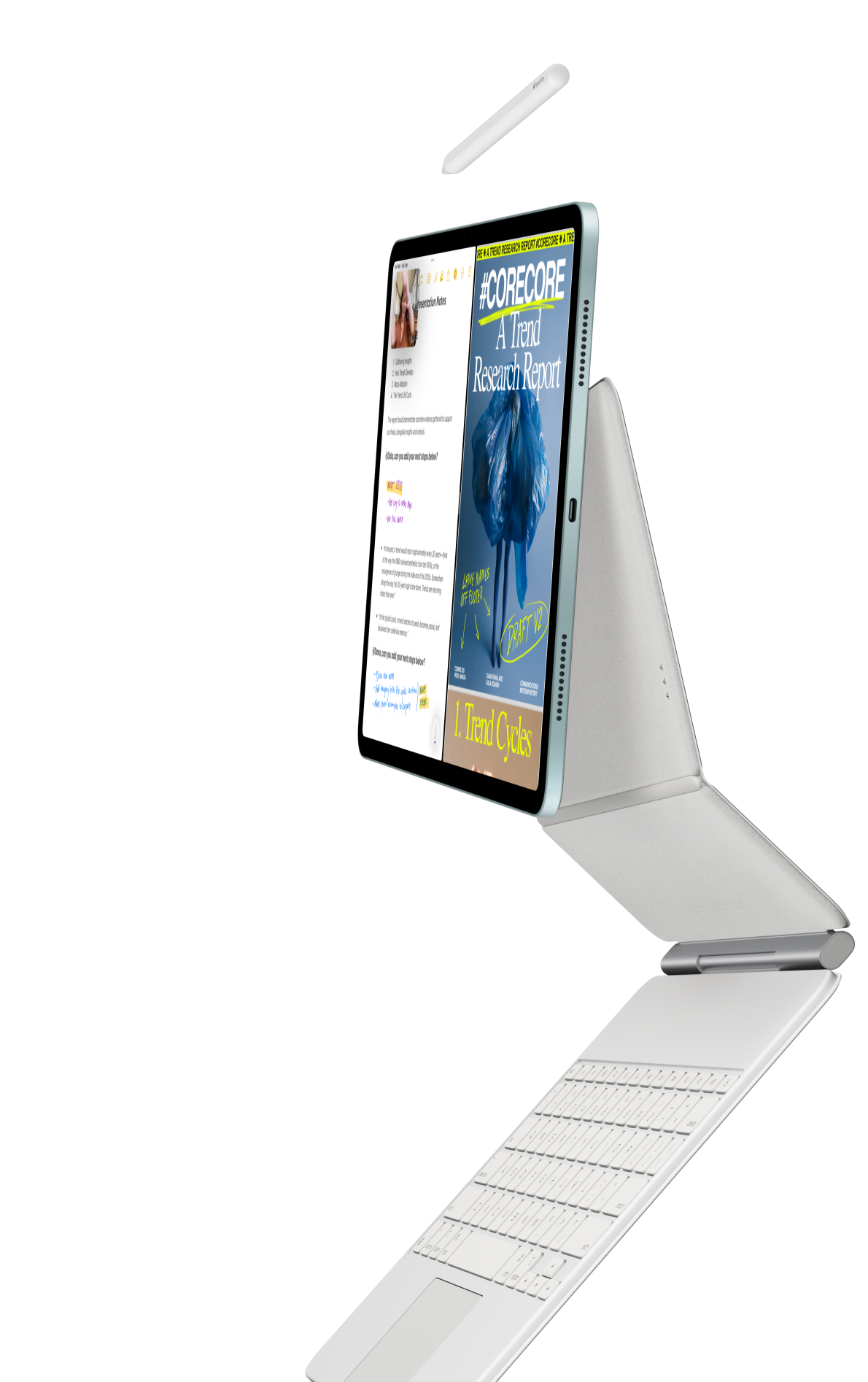 iPad Air attached to Magic Keyboard for iPad Air and Apple Pencil Pro