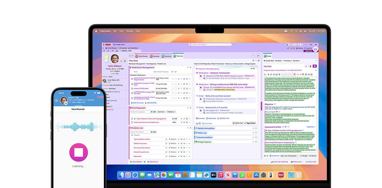 Epic Hyperspace helps providers access and update patient records quickly and easily. Authenticate using Touch ID and stay a step ahead with AI-powered clinical summaries, AI-drafted replies to patient messages, and ambient documentation technology.