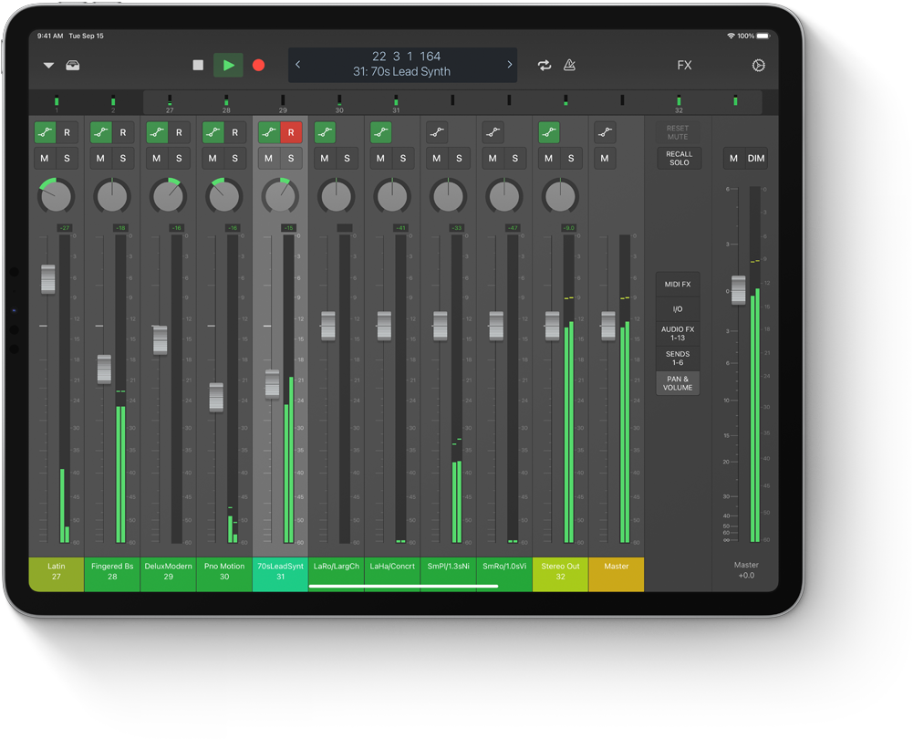 iPad Pro. Ketika ide-ide baru untuk komposisi muncul, Hughes menggunakan Logic Remote di iPad untuk memainkan instrumen perangkat lunak, membuat rekaman, dan menggabungkan trek dengan gerakan Multi-Touch, dari mana pun di dalam ruangan.