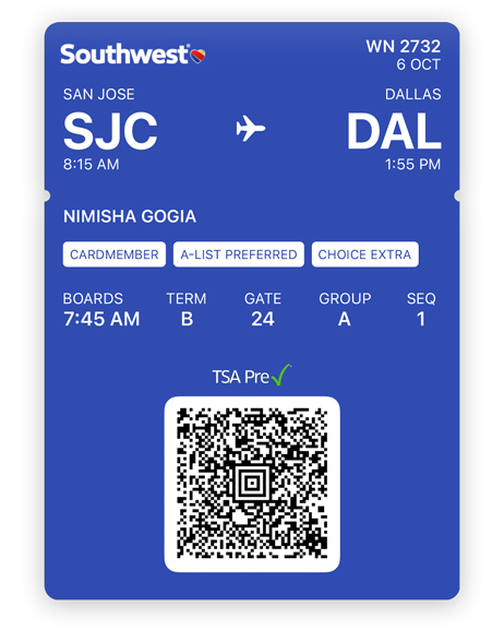 Southwest boarding passes will be available at a later date.