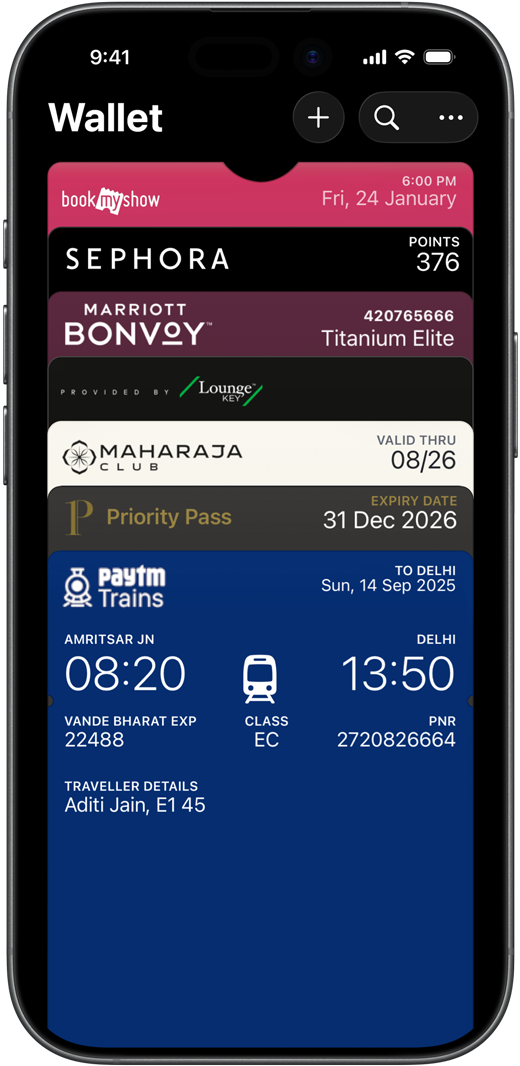 • Apple Wallet is an app on iPhone and Apple Watch that securely and conveniently organises your boarding passes, tickets, rewards cards and more — all in one place.