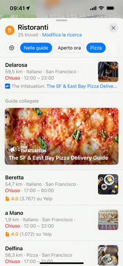 Le guide sono elenchi di luoghi selezionati da partner di fiducia per aiutarti a scoprire ristoranti, negozi, luoghi d’interesse e meraviglie nascoste. Mappe offre oltre 1000 guide per varie città del mondo. In Mappe su iOS 15, tocca “Esplora le guide” per vedere quelle consigliate dalla redazione.