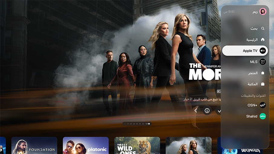 تطبيق Apple TV. شاهد برامجك وأفلامك المفضلة أو اختر استئجارها أو شراءها في تطبيق واحد منسّق بعناية على يد خبراء. تابع مئات المسلسلات والأفلام الأصلية من Apple TV بالجودة التي تستحقها. واشترك في القنوات التي تريدها فقط، وشاركها مع ما يصل إلى ستة من أفراد العائلة من دون الحاجة إلى تطبيقات أو حسابات أو كلمات سر جديدة.