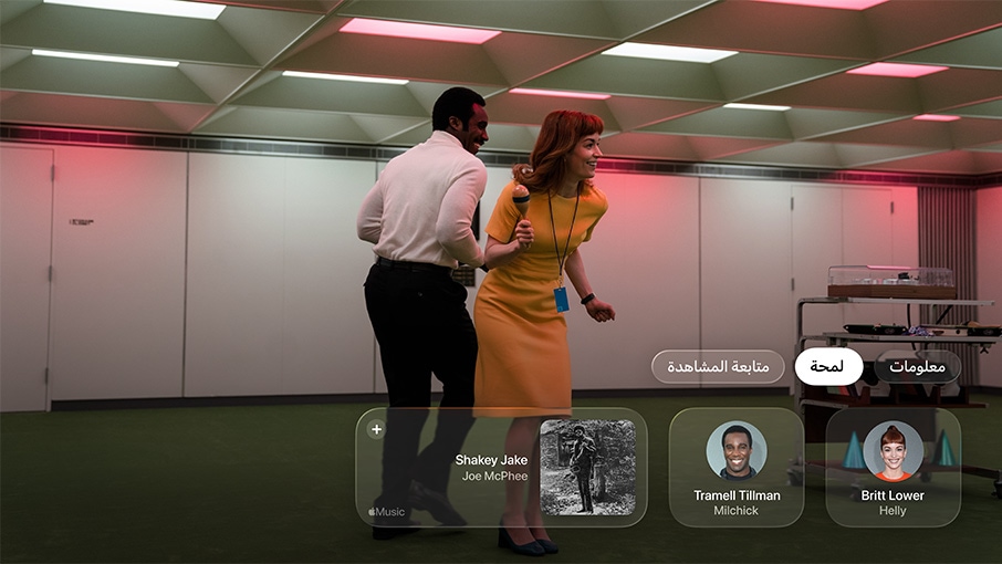 ميزة "لمحة". احصل على معلومات عن مسلسلات وأفلام Apple Original الأصلية من Apple TV أثناء مشاهدتها. ما عليك سوى عرض أدوات التحكم في تشغيل الوسائط لمعرفة المزيد عن الممثلين الذين يظهرون على الشاشة والموسيقى التي يتم تشغيلها. ويتم تحديث التفاصيل تلقائياً مع تغير المشهد. وعندما تستخدم iPhone كريموت لجهاز Apple TV، تظهر المعلومات مع ميزة "لمحة" بين راحة يديك.5