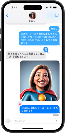 Image Playgroundを使って、楽しく遊び心あふれる画像を作成しましょう。メッセージやフリーボードなどのアプリ内、またはImage Playground専用のアプリからどうぞ。アニメーション、イラスト、スケッチのほか、ChatGPTのまったく新しいスタイルから選べます。写真ライブラリ内の家族や友だちをモデルにした画像では、ひげや表情などをカスタマイズすることもできます。