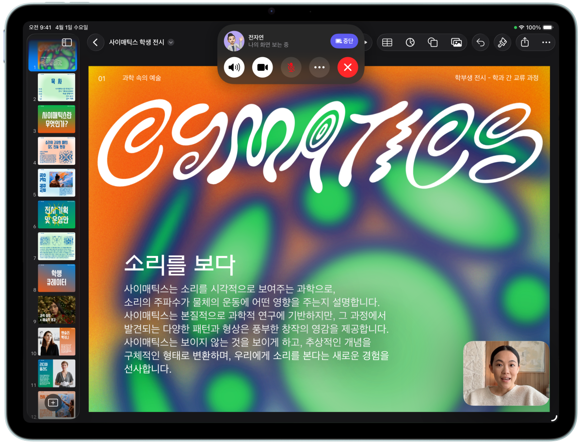 Apple Pencil은 그림을 그리고, 손글씨를 쓰고, 필기를 하는 행위가 어떤 느낌으로 이루어져야 하는지에 대한 기준을 제시합니다. 직관적이고, 정밀하면서도 사뭇 신기롭죠. 픽셀 단위의 정밀함에 극히 짧은 지연 시간, 기울기 감지 기능, 팜리젝션 기능까지 갖췄답니다. Apple Pencil Pro는 여기에 더욱더 많은 기능을 더해 전에 없던 방식으로 당신의 아이디어에 생명을 불어넣을 수 있게 해줍니다.2