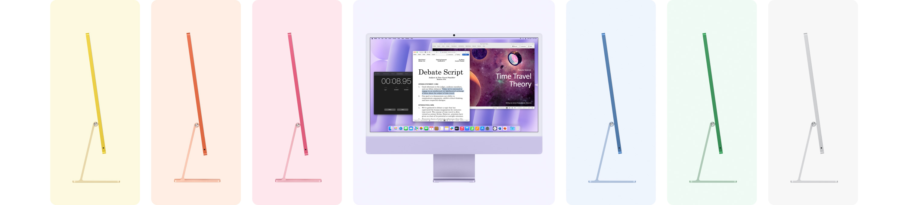 iMac comes loaded with incredible built-in apps, advanced privacy and security, and amazing features for work and play. And macOS brings more speed and responsiveness to all your go-to apps — from Microsoft Word, Excel, and Outlook to Slack, Canva, and Adobe Photoshop.
