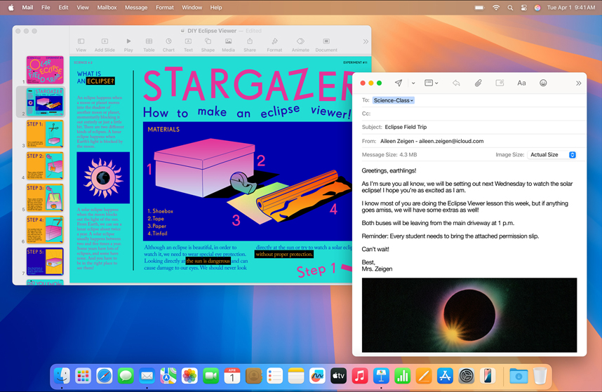 Convierte tus proyectos en podcasts o películas con Clips, GarageBand y iMovie.