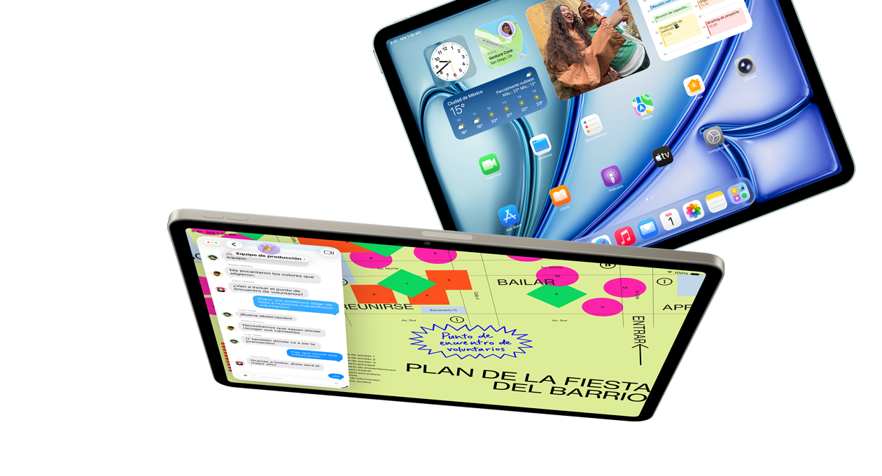 El ultrarrápido chip M4 cuenta con 50% más de memoria unificada y mejora el rendimiento para que disfrutes aún más tu iPad Air, porque al desatar todo el potencial de las funcionalidades y capacidades de IA que usas a diario, podrás hacer de todo con mucha más facilidad y rapidez. Además, la arquitectura del GPU ofrece gráficos avanzados aún más fluidos hagas lo que hagas, ya sea trabajar, crear, jugar o ver contenido en streaming. Todo esto con una eficiencia asombrosa para que la batería te acompañe todo el día.4