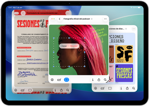 Ordena tus ventanas moviéndolas hacia el borde izquierdo o derecho. Además, ahora también puedes dividir la pantalla del iPad en tercios o cuartos.