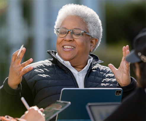 iPad Pro. Dr Iimura and his students use iPad, Apple Pencil and Adobe Illustrator to sketch out and storyboard ideas for an accessibility app that helps teachers communicate with non‑verbal students.