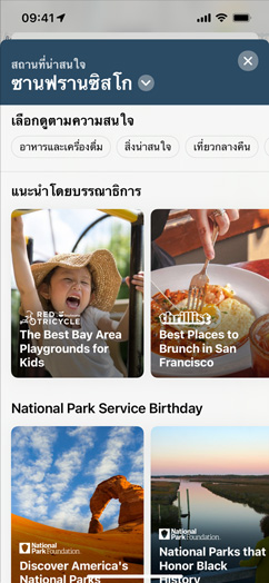 "สถานที่น่าสนใจที่ คัดสรรมาอย่างดี" คือ รายชื่อ สถานที่ที่จัดทำขึ้นโดย พันธมิตร ที่เชื่อถือได้ เพื่อช่วย ให้คุณ ได้ค้นพบ สถานที่ดีๆ สำหรับการกิน ช้อปปิ้ง พบปะเพื่อนฝูง หรือเพียงเพื่อ การสำรวจ แอปแผนที่ มีสถานที่ น่าสนใจ ที่คัดสรร มาอย่างดี กว่า 1,000 รายการ ในเมืองต่างๆ ทั่วโลก แตะ "สำรวจ สถานที่ น่าสนใจ" บนแอปแผนที่ใน iOS 15 เพื่อดู สถานที่น่าสนใจที่แนะนำโดยบรรณาธิการ แอปแผนที่ -