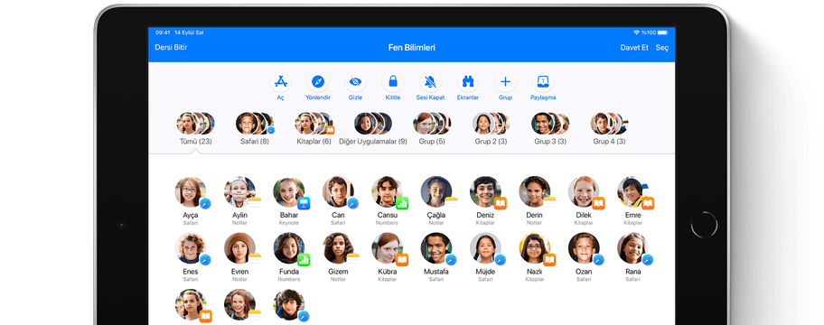 Ailelere verdiğimiz önem evinizle sınırlı değil. Apple aygıtları, sınıfta yapılabileceklerin kapsamını genişletiyor. Derslik ve Okul gibi uygulamalar ise öğrencilerin çalışmalarını takip etme konusunda öğretmenlere yardımcı oluyor. Sahip olduğunuz denetimlerin birçoğuna eğitmenler de erişebiliyor. Ve Apple, çocuklarınızın bilgilerini bir profil oluşturmak veya onlara ürün pazarlamak için kullanmıyor.
