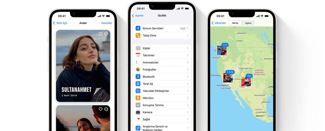 Ailenizin sahip olduğu aygıtlar birçok kişisel bilgi içeriyor. Bu nedenle, donanım ve yazılımlarımızı bu kişisel bilgileri gizli tutacak şekilde tasarlıyoruz. Örneğin Touch ID ve Face ID, kişisel aygıtlarda yer alan en ileri düzey güvenlik teknolojilerinden ikisi. Ayrıca, ebeveynler için çocuklarının aygıtlarındaki gizlilik denetimlerini ayarlamayı da kolaylaştırdık.
