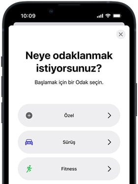 Araba kullanırken hiç kimsenin dikkati telefon yüzünden dağılmamalı. Sürüş Odağı özelliği sayesinde iPhone’unuz, gideceğiniz yere ulaşana kadar mesajların, aramaların veya bildirimlerin sizi rahatsız etmesini engelliyor. Acil bir durumda ise arayan kişiler bu özelliği devre dışı bırakarak size ulaşabiliyor.